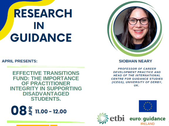 Euroguidance España asistió el 8 de abril al webinar propuesto por Irlanda sobre la investigación titulada “Fondo para transiciones efectivas: la importancia de la integridad de los profesionales en el apoyo a los estudiantes en situación de desventaja”. La exposición estuvo a cargo de Siobhan Neary, profesora de prácticas de desarrollo vocacional y directora del Centro Internacional de Estudios de Orientación en la Universidad de Derby (Reino Unido).